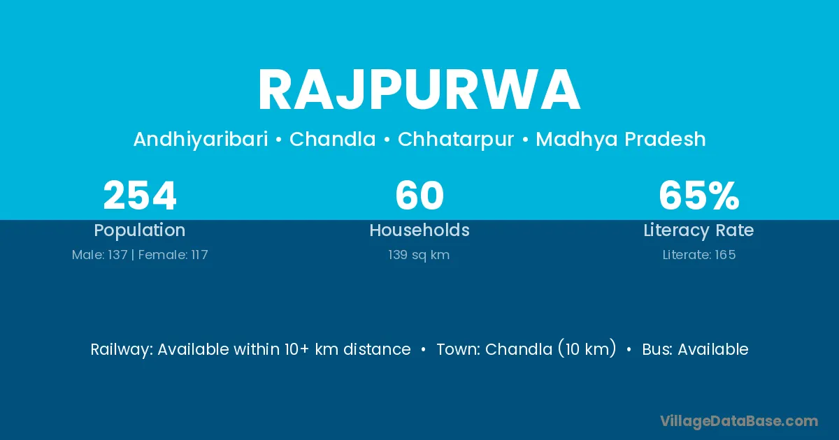 Rajpurwa village has a total population of 254 people, of which 137 are males and 117 are females.