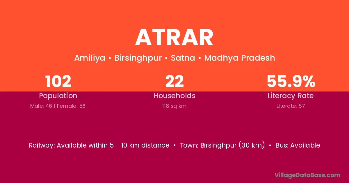Chhatarpur (15 km) is the nearest town to Atrar village for major economic activities and is located approximately 15 km away.