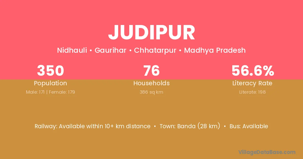 Banda (28 km) is the nearest town to Judipur village for major economic activities and is located approximately 28 km away.
