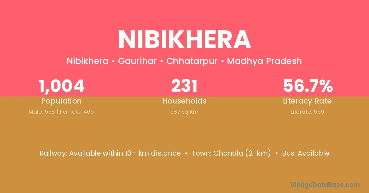 Chandla (21 km) is the nearest town to Nibikhera village for major economic activities and is located approximately 21 km away.
