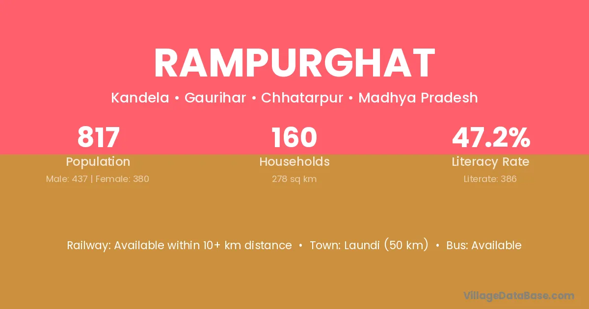 Laundi (50 km) is the nearest town to Rampurghat village for major economic activities and is located approximately 50 km away.