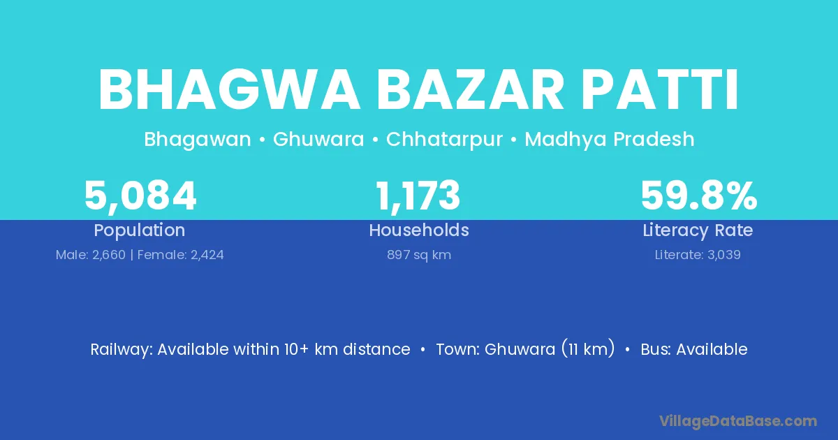 Ghuwara (11 km) is the nearest town to Bhagwa Bazar Patti village for major economic activities and is located approximately 11 km away.