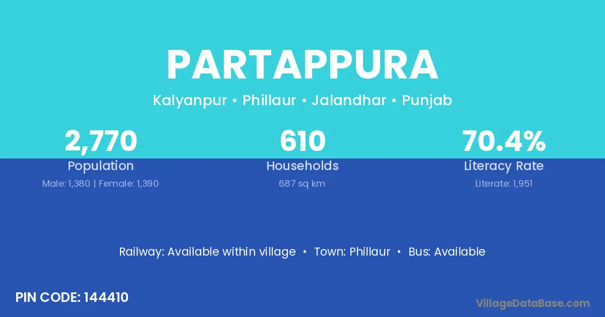 Laundi (5 km) is the nearest town to Partappura village for major economic activities and is located approximately 5 km away.