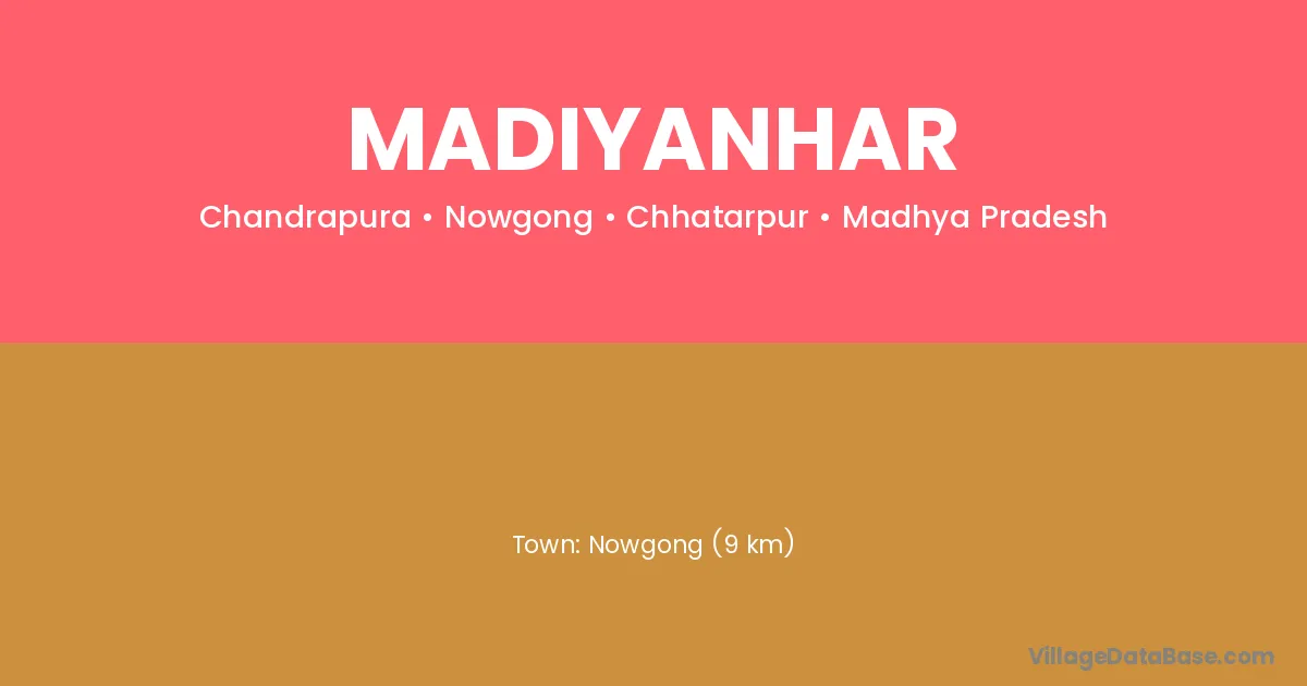 Nowgong (9 km) is the nearest town to Madiyanhar village for major economic activities and is located approximately 9 km away.
