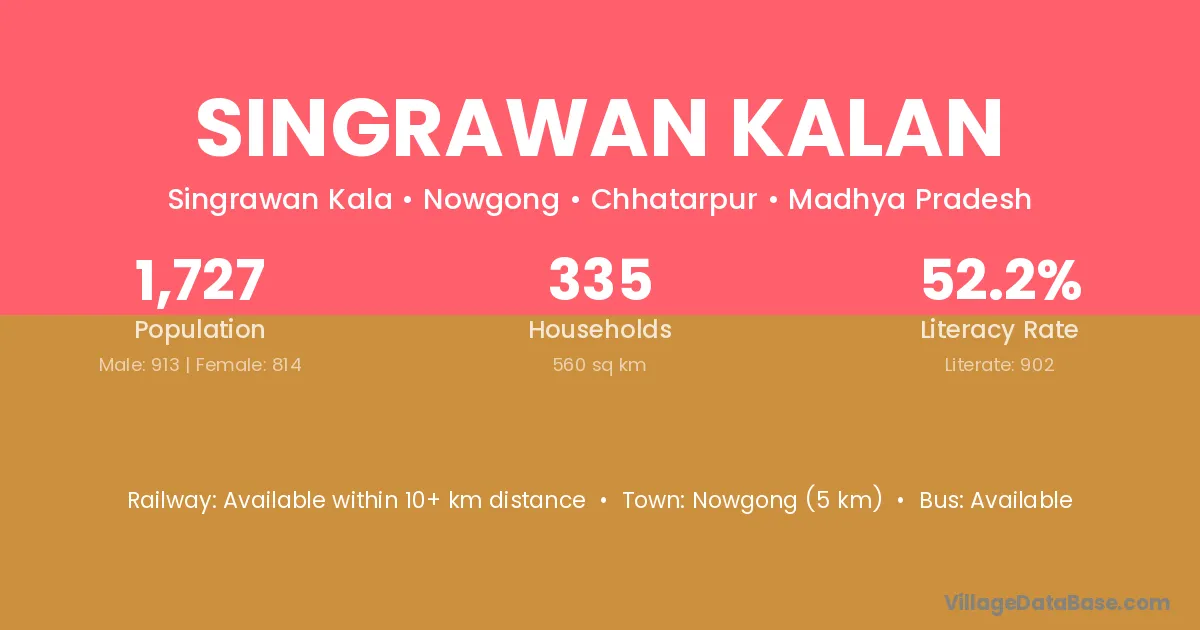 Singrawan Kalan village has a total population of 1,727 people, of which 913 are males and 814 are females.