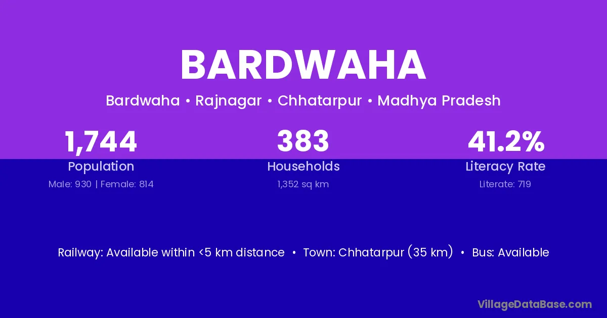 Chhatarpur (35 km) is the nearest town to Bardwaha village for major economic activities and is located approximately 35 km away.