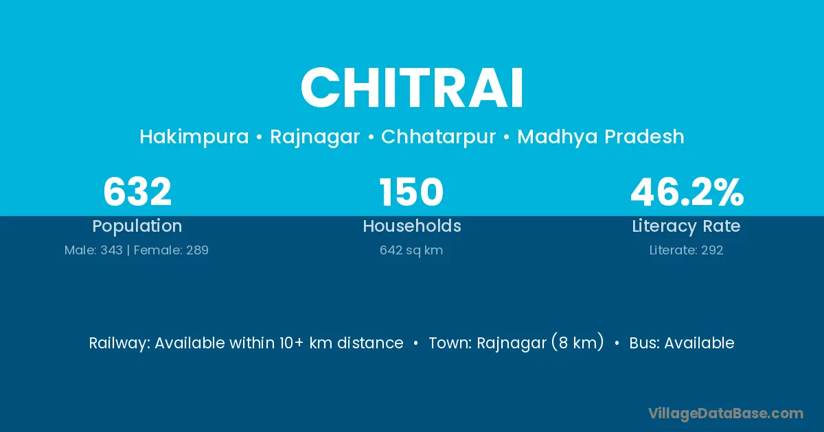 Chitrai village has a total population of 632 people, of which 343 are males and 289 are females.