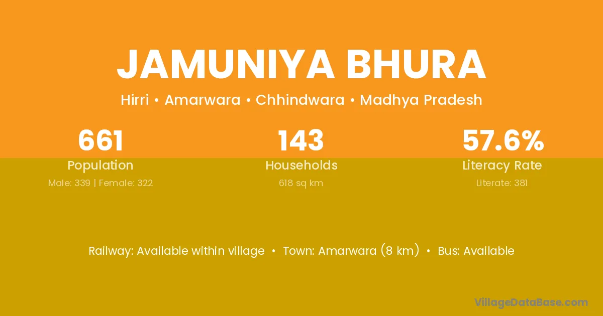 Amarwara (8 km) is the nearest town to Jamuniya Bhura village for major economic activities and is located approximately 8 km away.