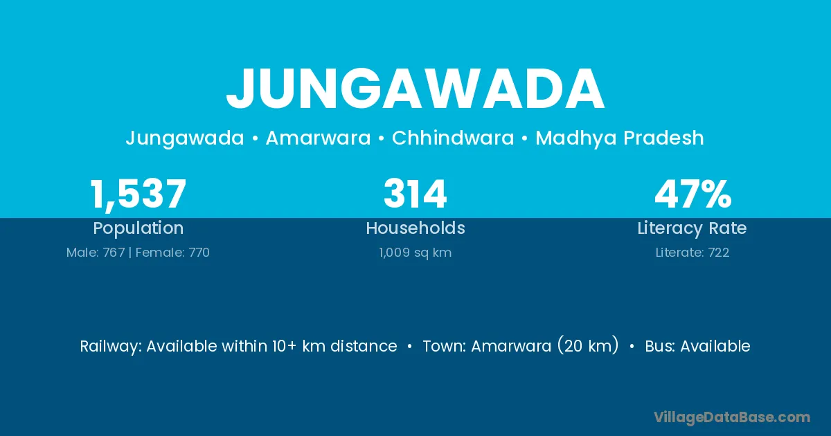 Amarwara (20 km) is the nearest town to Jungawada village for major economic activities and is located approximately 20 km away.