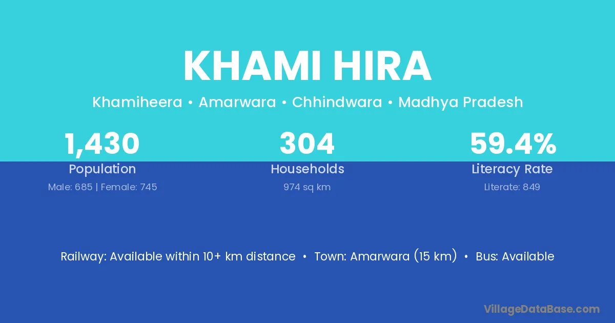 Amarwara (15 km) is the nearest town to Khami Hira village for major economic activities and is located approximately 15 km away.