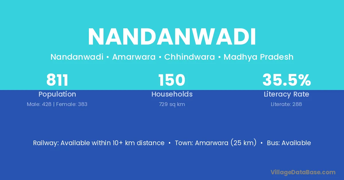 Amarwara (25 km) is the nearest town to Nandanwadi village for major economic activities and is located approximately 25 km away.
