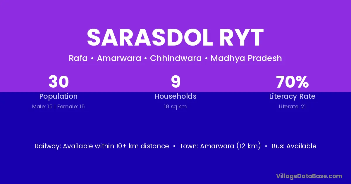 Amarwara (12 km) is the nearest town to Sarasdol Ryt village for major economic activities and is located approximately 12 km away.