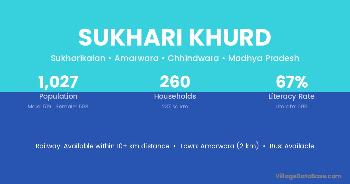 Amarwara (2 km) is the nearest town to Sukhari Khurd village for major economic activities and is located approximately 2 km away.