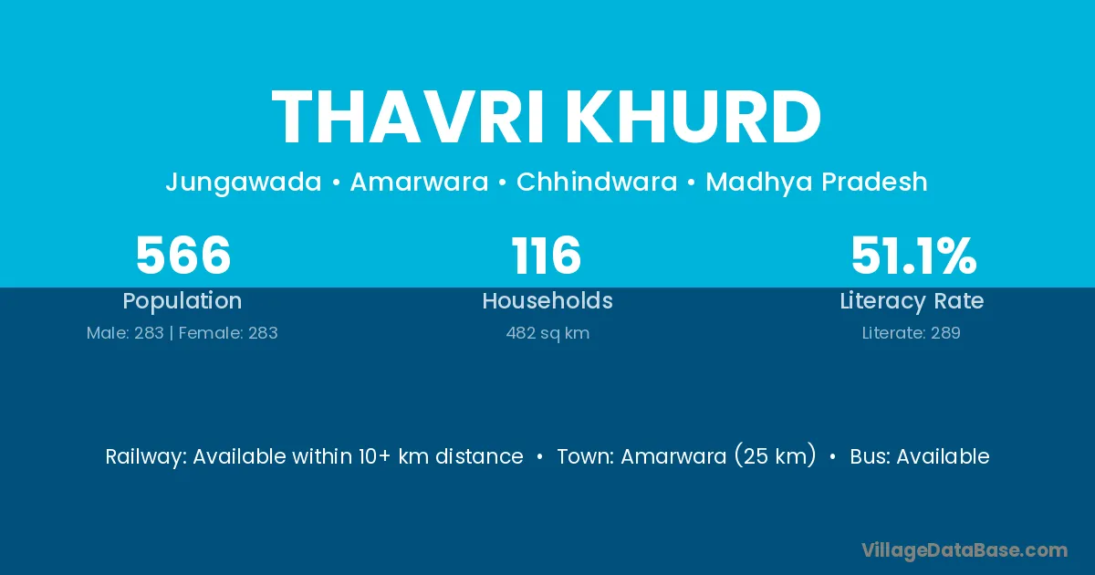 Amarwara (25 km) is the nearest town to Thavri Khurd village for major economic activities and is located approximately 25 km away.