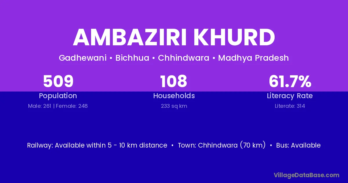Ambaziri Khurd village has a total population of 509 people, of which 261 are males and 248 are females.