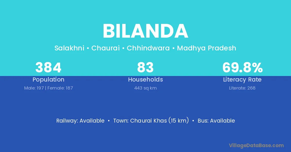 Chaurai Khas (15 km) is the nearest town to Bilanda village for major economic activities and is located approximately 15 km away.