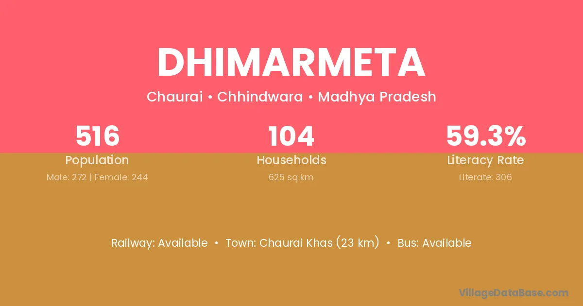 Chaurai Khas (23 km) is the nearest town to Dhimarmeta village for major economic activities and is located approximately 23 km away.