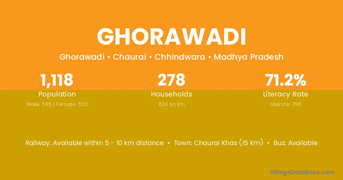 Chaurai Khas (15 km) is the nearest town to Ghorawadi village for major economic activities and is located approximately 15 km away.