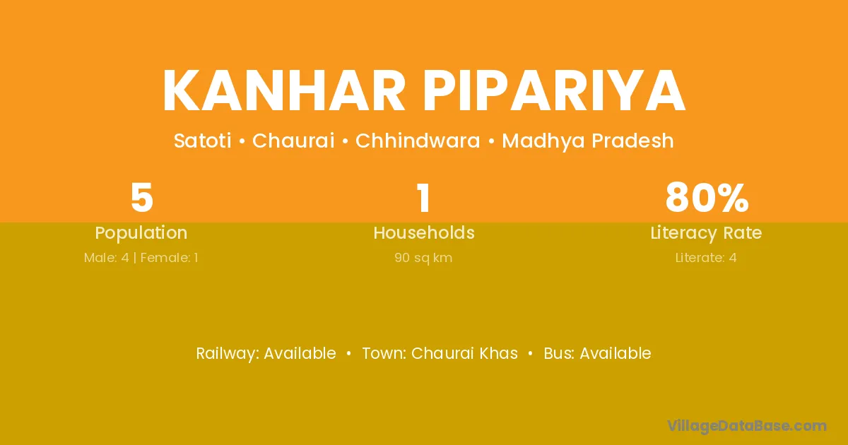 Kanhar Pipariya village has a total population of 5 people, of which 4 are males and 1 are females.