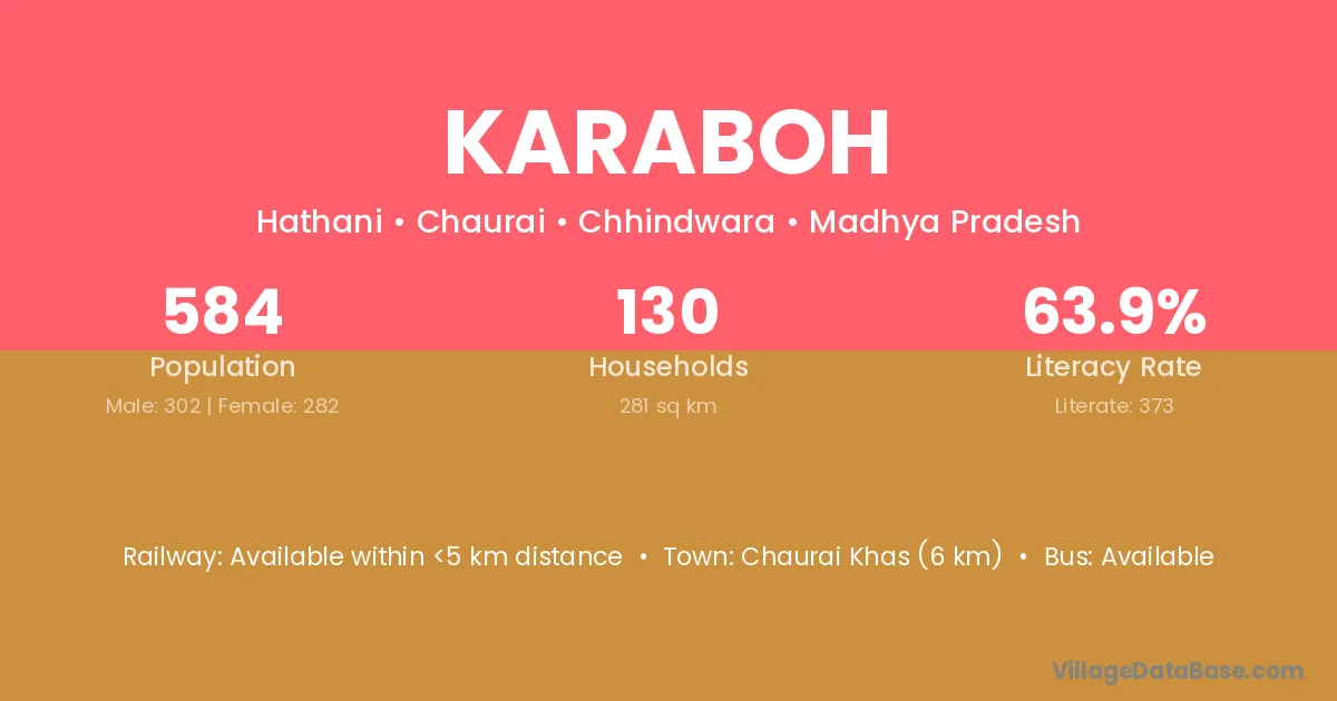 Karaboh village has a total population of 584 people, of which 302 are males and 282 are females.