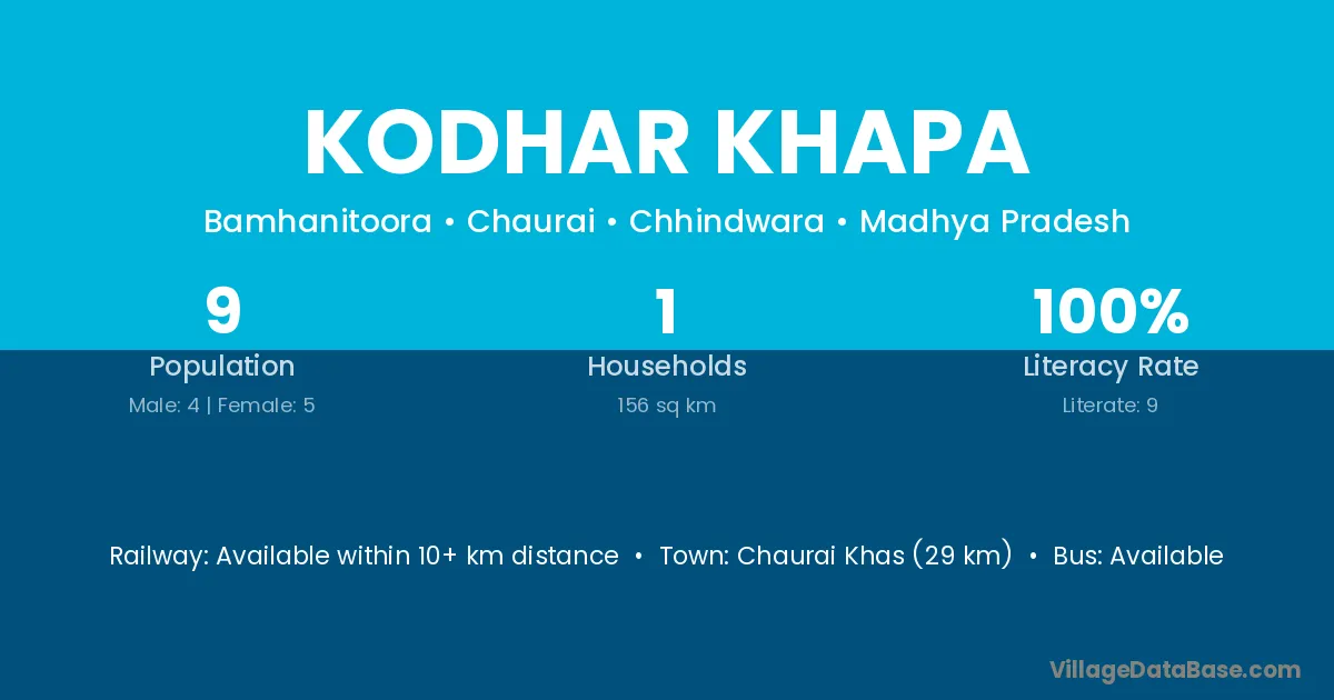 Kodhar Khapa village has a total population of 9 people, of which 4 are males and 5 are females.