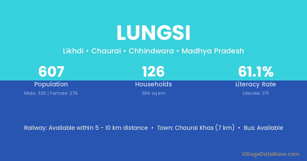 Chaurai Khas (7 km) is the nearest town to Lungsi village for major economic activities and is located approximately 7 km away.