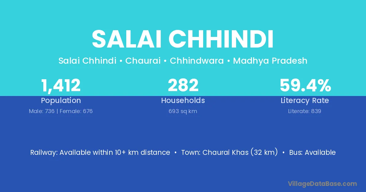 Chaurai Khas (32 km) is the nearest town to Salai Chhindi village for major economic activities and is located approximately 32 km away.
