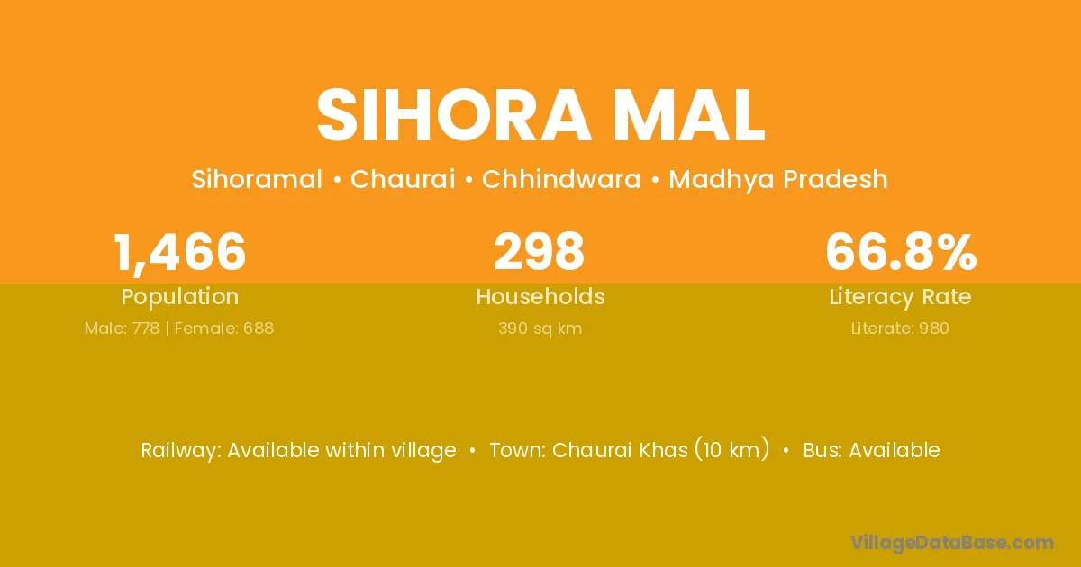 Chaurai Khas (10 km) is the nearest town to Sihora Mal village for major economic activities and is located approximately 10 km away.