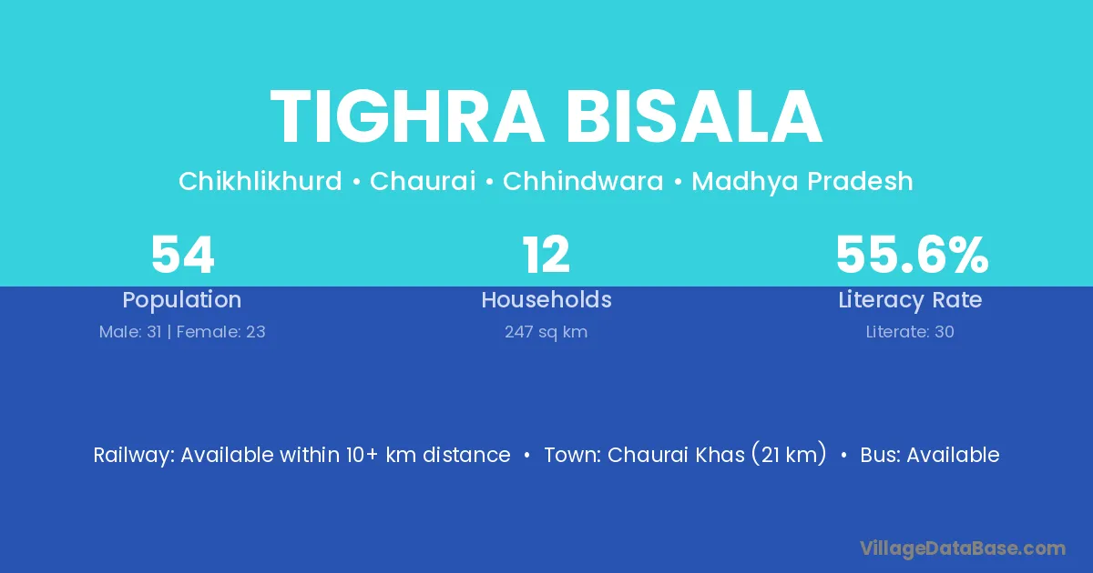 Tighra Bisala village has a total population of 54 people, of which 31 are males and 23 are females.