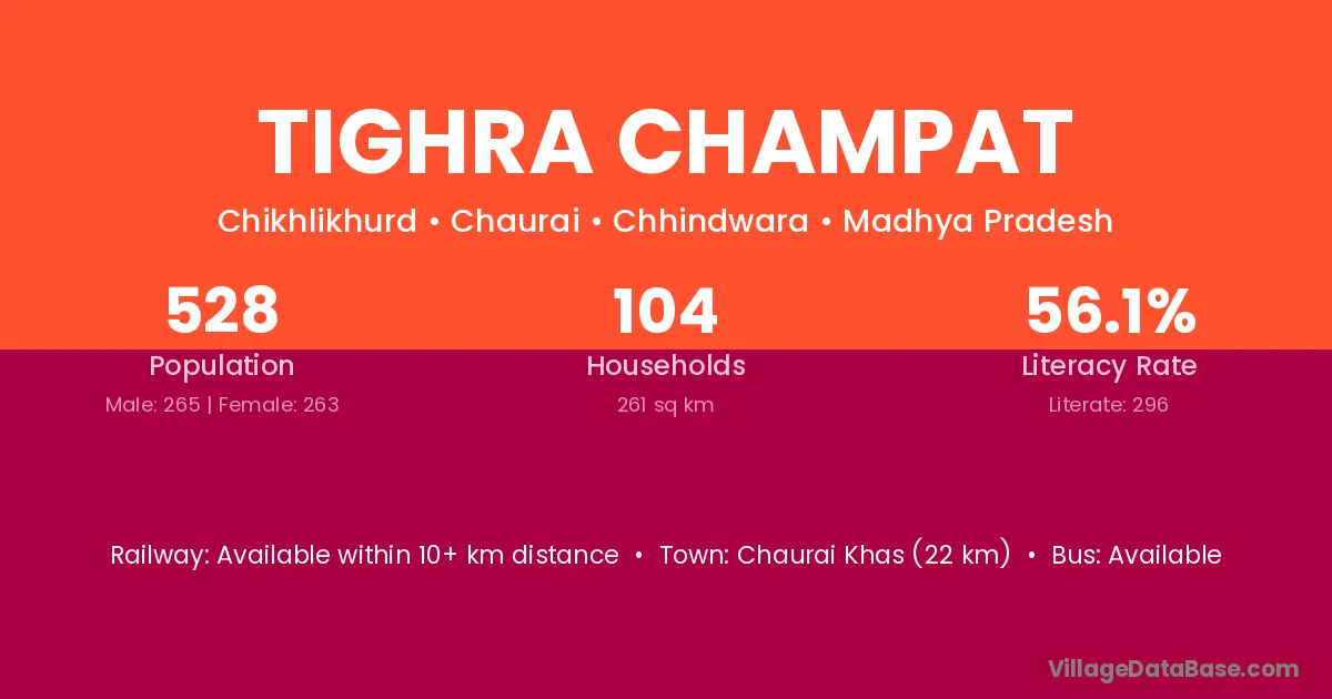 Tighra Champat village has a total population of 528 people, of which 265 are males and 263 are females.