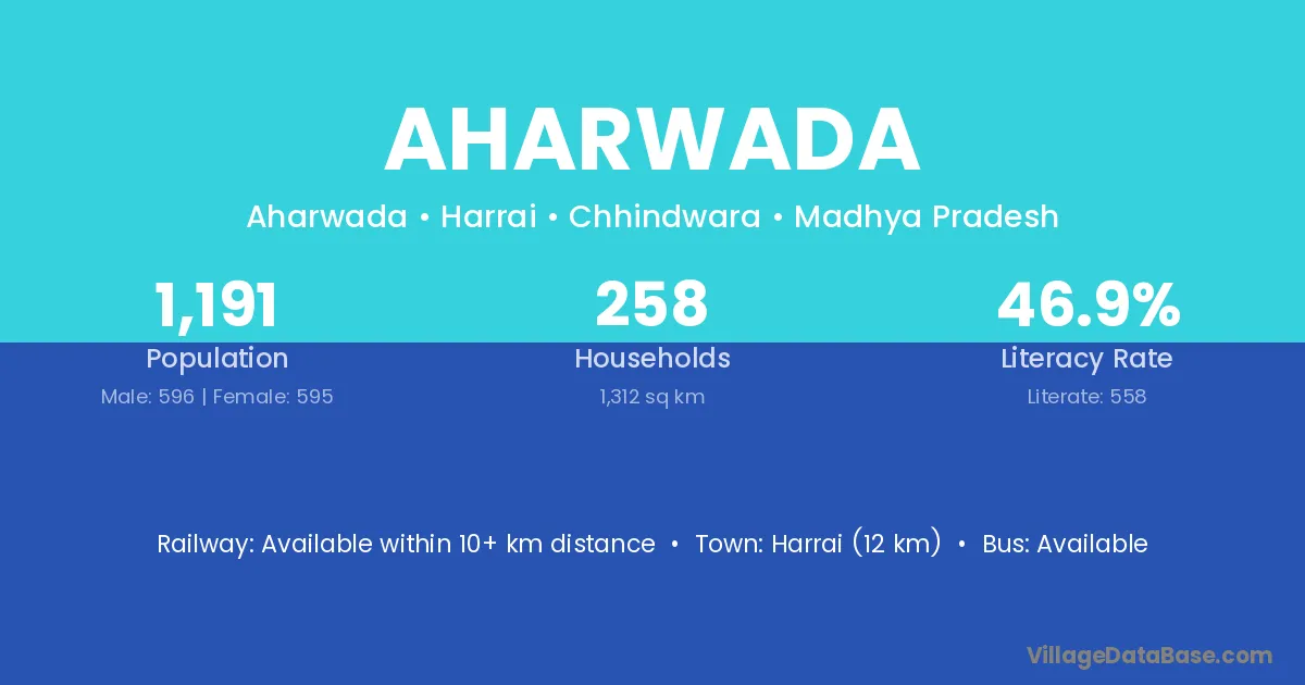 Aharwada village has a total population of 1,191 people, of which 596 are males and 595 are females.