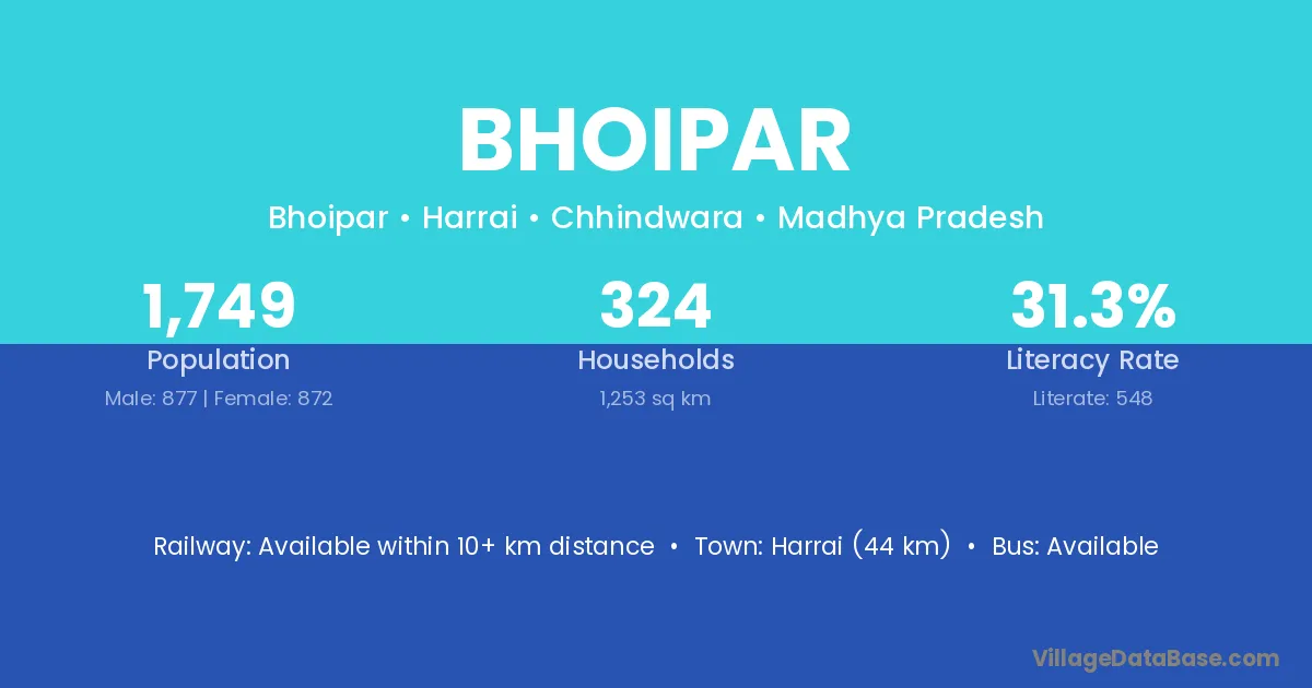 Harrai (44 km) is the nearest town to Bhoipar village for major economic activities and is located approximately 44 km away.