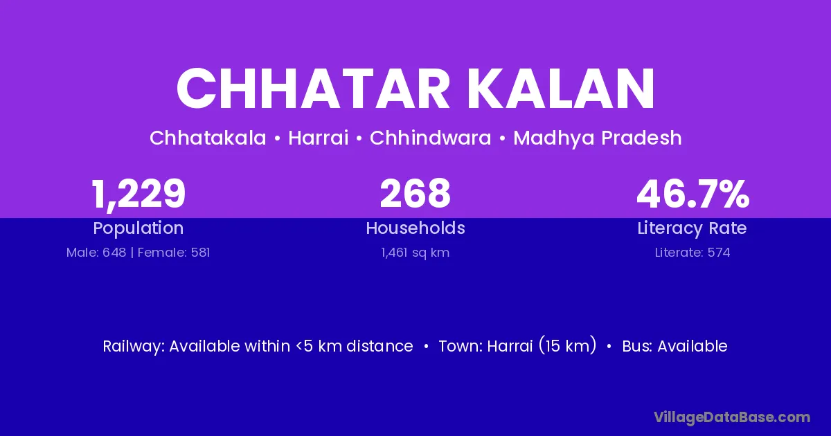 Harrai (15 km) is the nearest town to Chhatar Kalan village for major economic activities and is located approximately 15 km away.