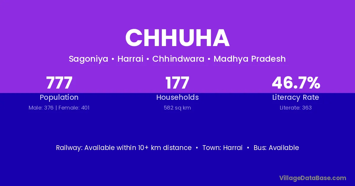 Chhuha village has a total population of 777 people, of which 376 are males and 401 are females.