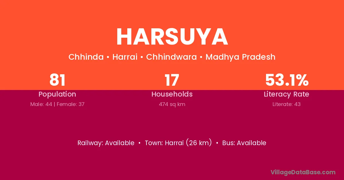 Harsuya village has a total population of 81 people, of which 44 are males and 37 are females.