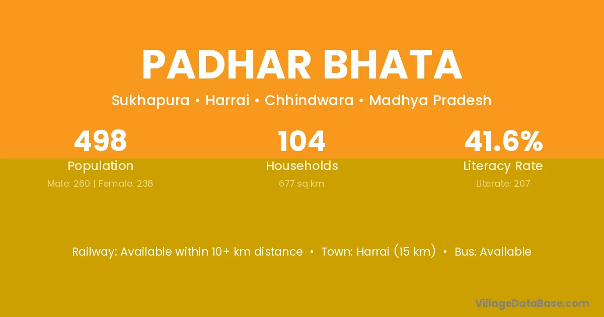 Harrai (15 km) is the nearest town to Padhar Bhata village for major economic activities and is located approximately 15 km away.