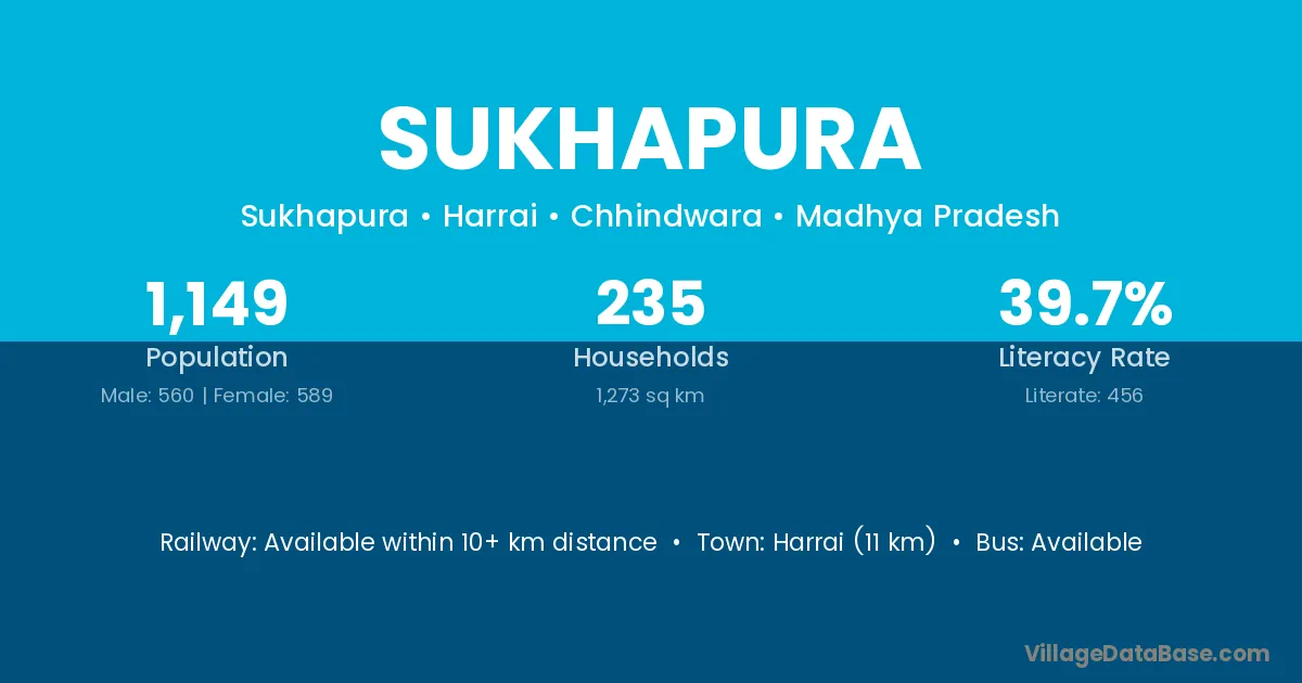 Harrai (11 km) is the nearest town to Sukhapura village for major economic activities and is located approximately 11 km away.