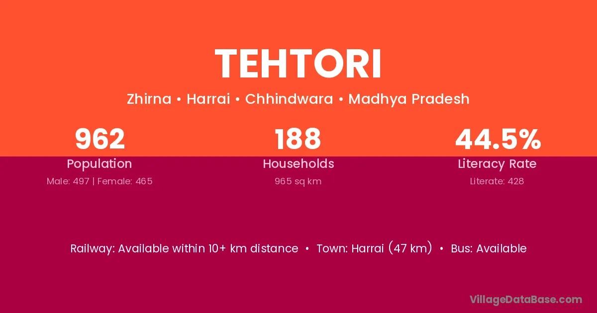 Harrai (47 km) is the nearest town to Tehtori village for major economic activities and is located approximately 47 km away.