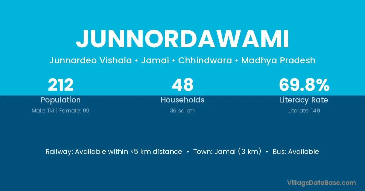 Jamai (3 km) is the nearest town to Junnordawami village for major economic activities and is located approximately 3 km away.