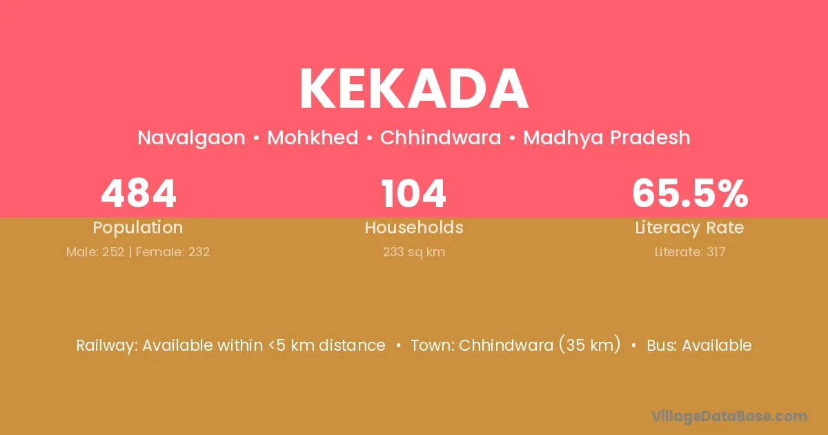 Chhindwara (35 km) is the nearest town to Kekada village for major economic activities and is located approximately 35 km away.