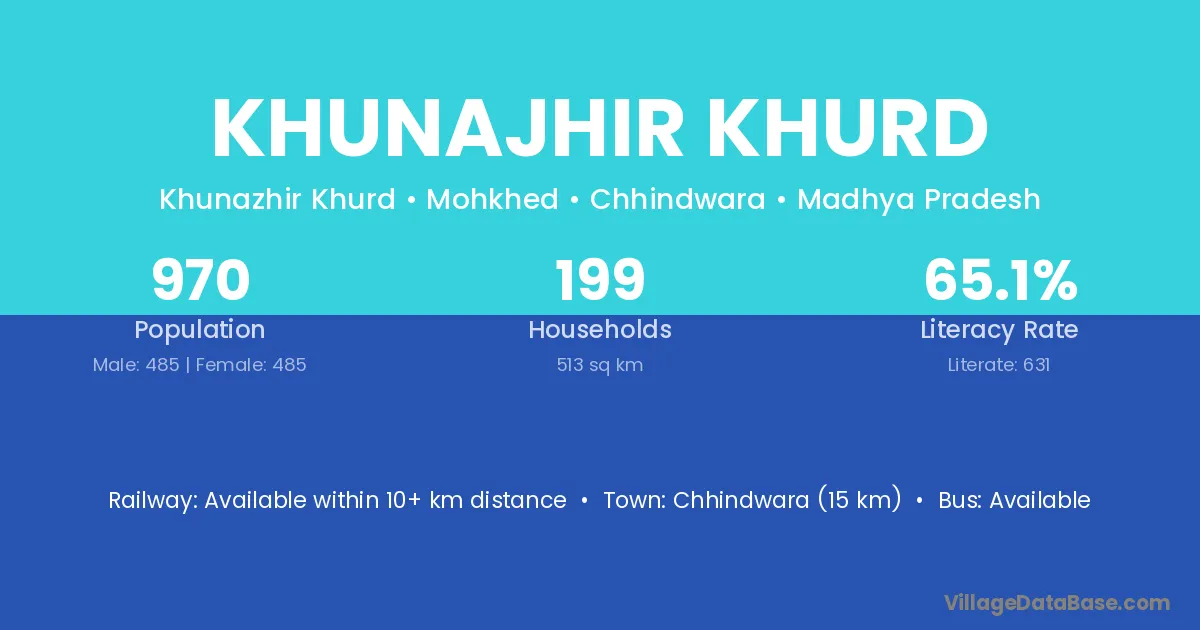 Khunajhir Khurd village has a total population of 970 people, of which 485 are males and 485 are females.