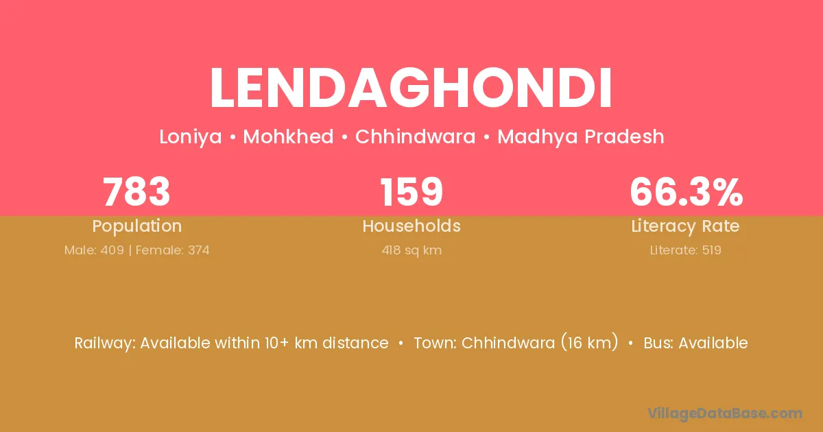 Chhindwara (16 km) is the nearest town to Lendaghondi village for major economic activities and is located approximately 16 km away.