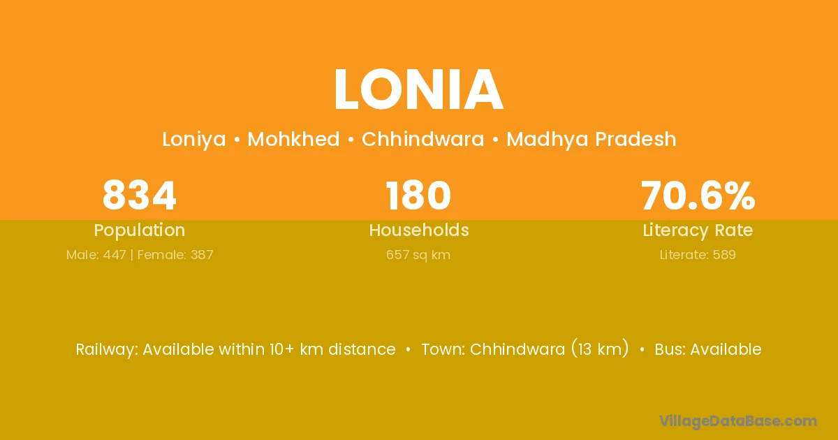 Chhindwara (13 km) is the nearest town to Lonia village for major economic activities and is located approximately 13 km away.