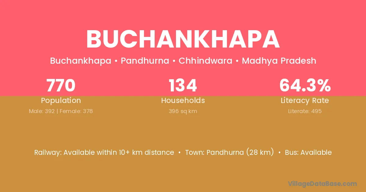 Buchankhapa village has a total population of 770 people, of which 392 are males and 378 are females.