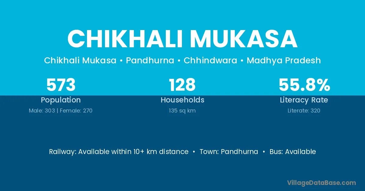 Chikhali Mukasa village has a total population of 573 people, of which 303 are males and 270 are females.