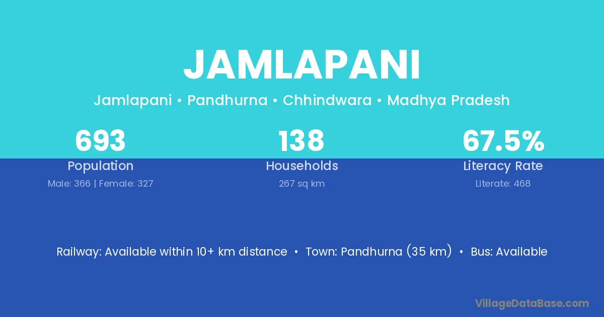 Pandhurna (35 km) is the nearest town to Jamlapani village for major economic activities and is located approximately 35 km away.