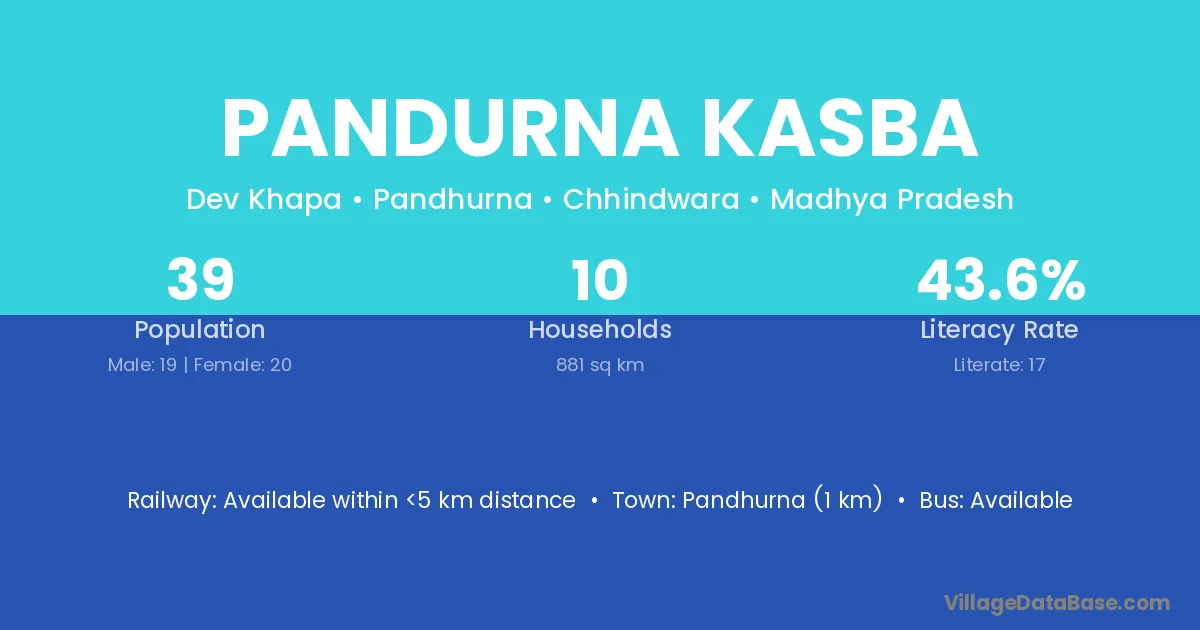 Pandhurna (1 km) is the nearest town to Pandurna Kasba village for major economic activities and is located approximately 1 km away.