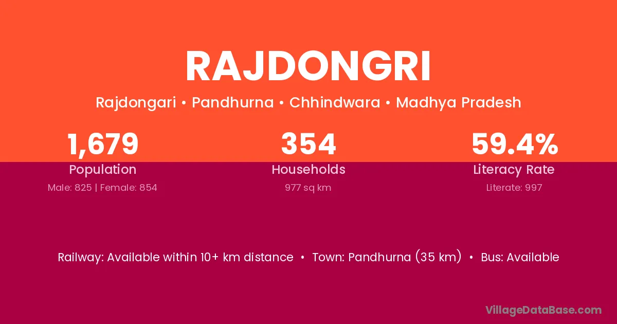 Pandhurna (35 km) is the nearest town to Rajdongri village for major economic activities and is located approximately 35 km away.