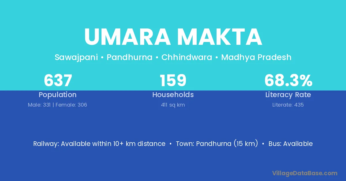 Pandhurna (15 km) is the nearest town to Umara Makta village for major economic activities and is located approximately 15 km away.