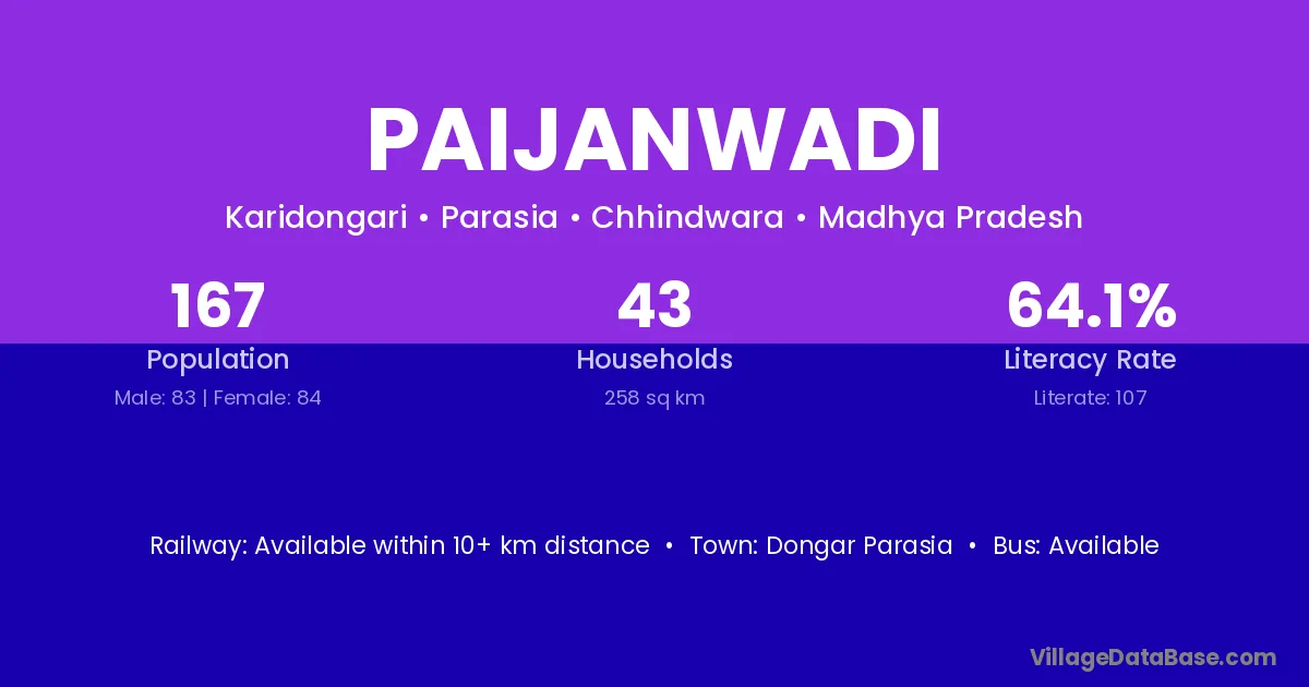Dongar Parasia is the nearest town to Paijanwadi village for major economic activities